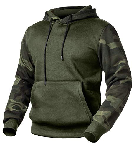 MANLUODANNI Men's Pullover Hoodies Hooded Sweatshirt Camo Patchwork Top Casual Hoody with Kangaroo Pocket Army Green M