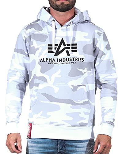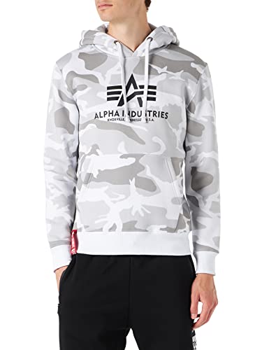 Alpha Industries Men's Basic Hoody Hooded Sweat Sweatshirt, White Camo, M