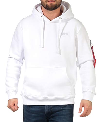 Alpha Industries Men's Back Print Hoody Hooded Sweat Sweatshirt, White/Black Camo, L