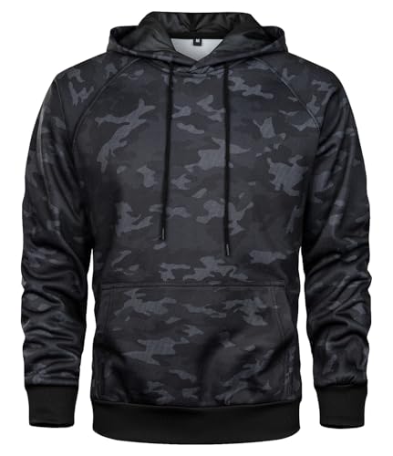 MANLUODANNI Men's Pullover Hoodies Hooded Sweatshirt Camo Patchwork Top Casual Hoody with Kangaroo Pocket Black XL