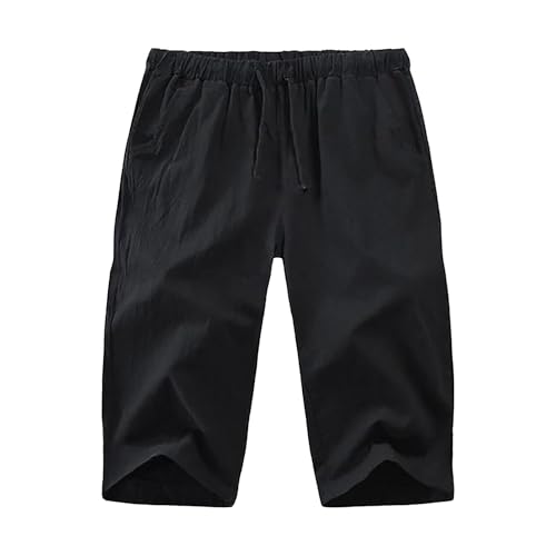 Lounge Pants Mens Baggy, Capri Pants for Men Below Knee Linen Casual Lightweight 3/4 Yoga Shorts Elastic Waist Drawstring with Pocket 2025 (Black, XL)