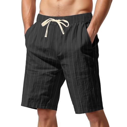 Mens Trousers Cotton, Capri Pants for Men Below Knee Linen Casual Lightweight 3/4 Yoga Shorts Elastic Waist Drawstring with Pocket 2025 (Green, XL)