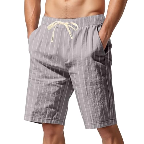 Linen Shorts Men Beach - Mens Linen Harem Capri Pants Loose Fit 3/4 Shorts Drawstring Elastic Waist Beach Yoga Trousers Baggy Wide Leg Pants (Grey L)