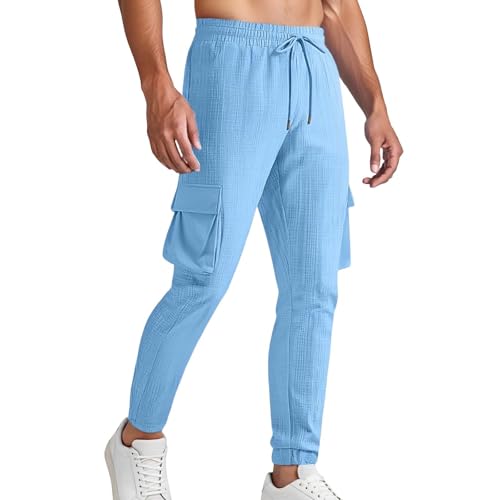 Mens Joggers - Mens Pants Casual Cargo Joggers With Drawstring Waist And Multiple Pockets For Athletic Streetwear Fashion Comfortable Daily Wear (Sky Blue, Xxxl)