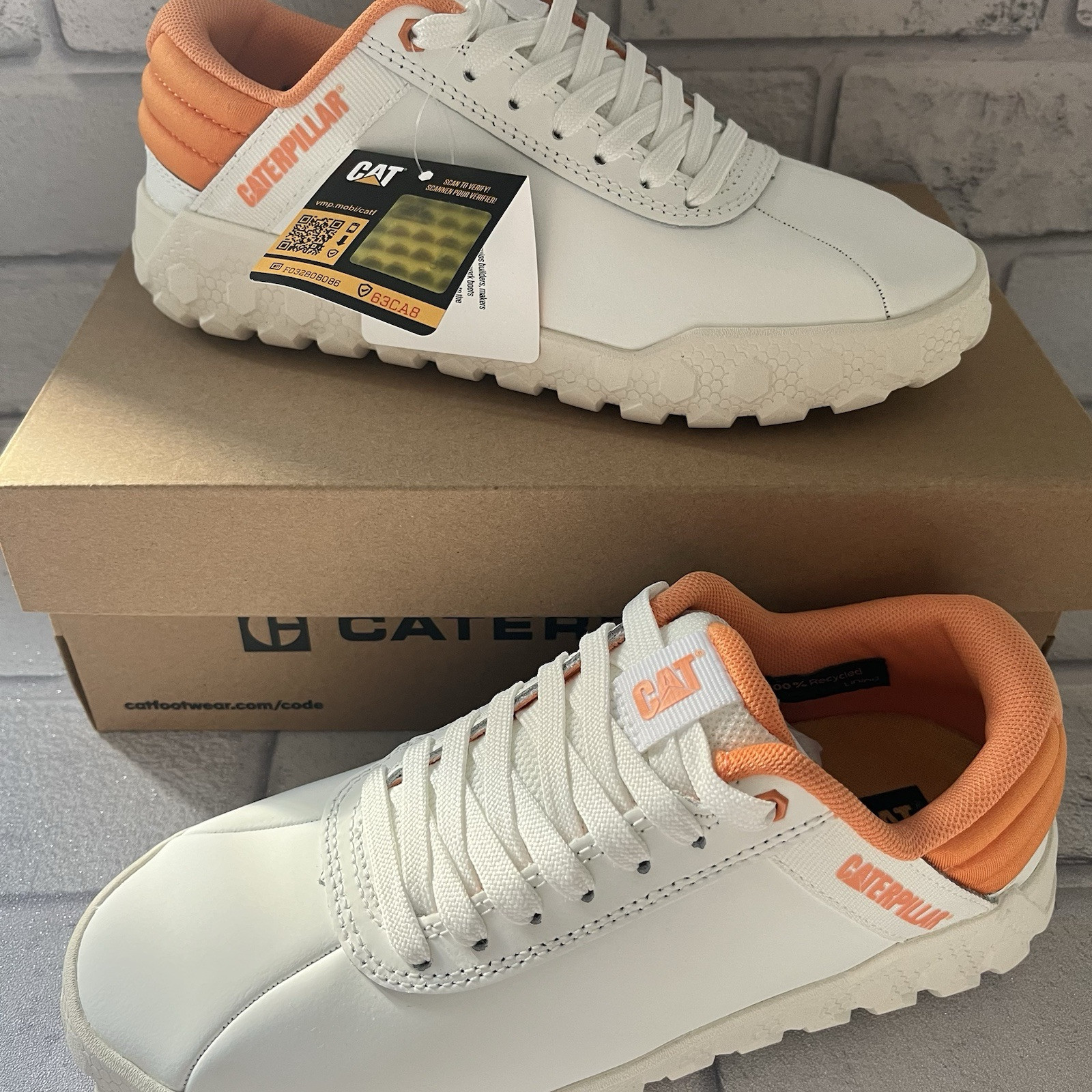 Caterpillar Hex Bright White Men's CAT Trainers Sneakers Size UK 7 Orange BNIB