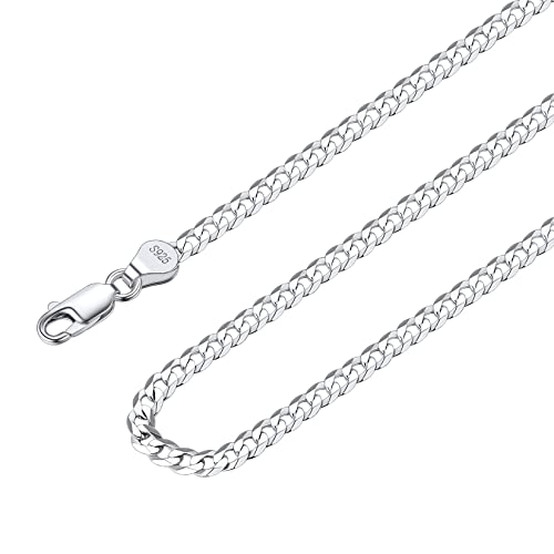 Suplight 925 Sterling Silver Flat Solid Cuban Necklace for Men 26 Inch Mens Silver Chain 5mm Men's Necklace Chains Gift for Father Brother Boyfriend