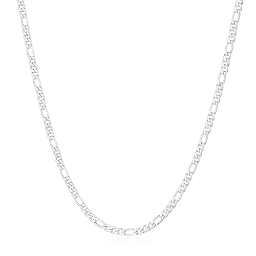 Suplight Sterling Silver Necklace for Men 3mm Figaro Link Chain 20 Inch Classic Mens Silver Chains Men's Jewellery Gift Ideas for Father Husband Son Grandson Boyfriend