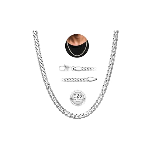 YADOCA 925 Sterling Silver Mens Chain, 5mm Thick Cuban Chain for Men Sturdy Mens Silver Chains Hypoallergenic Men's Necklace Jewelry for Boy 20 Inch