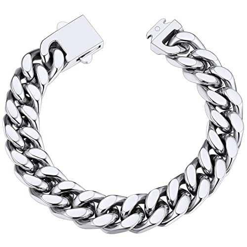 ChainsHouse Mens Silver Bracelet Cuban Chain Heavy Stainless Steel Bracelets for Men Hip Hop Chunky Curb Chains Link