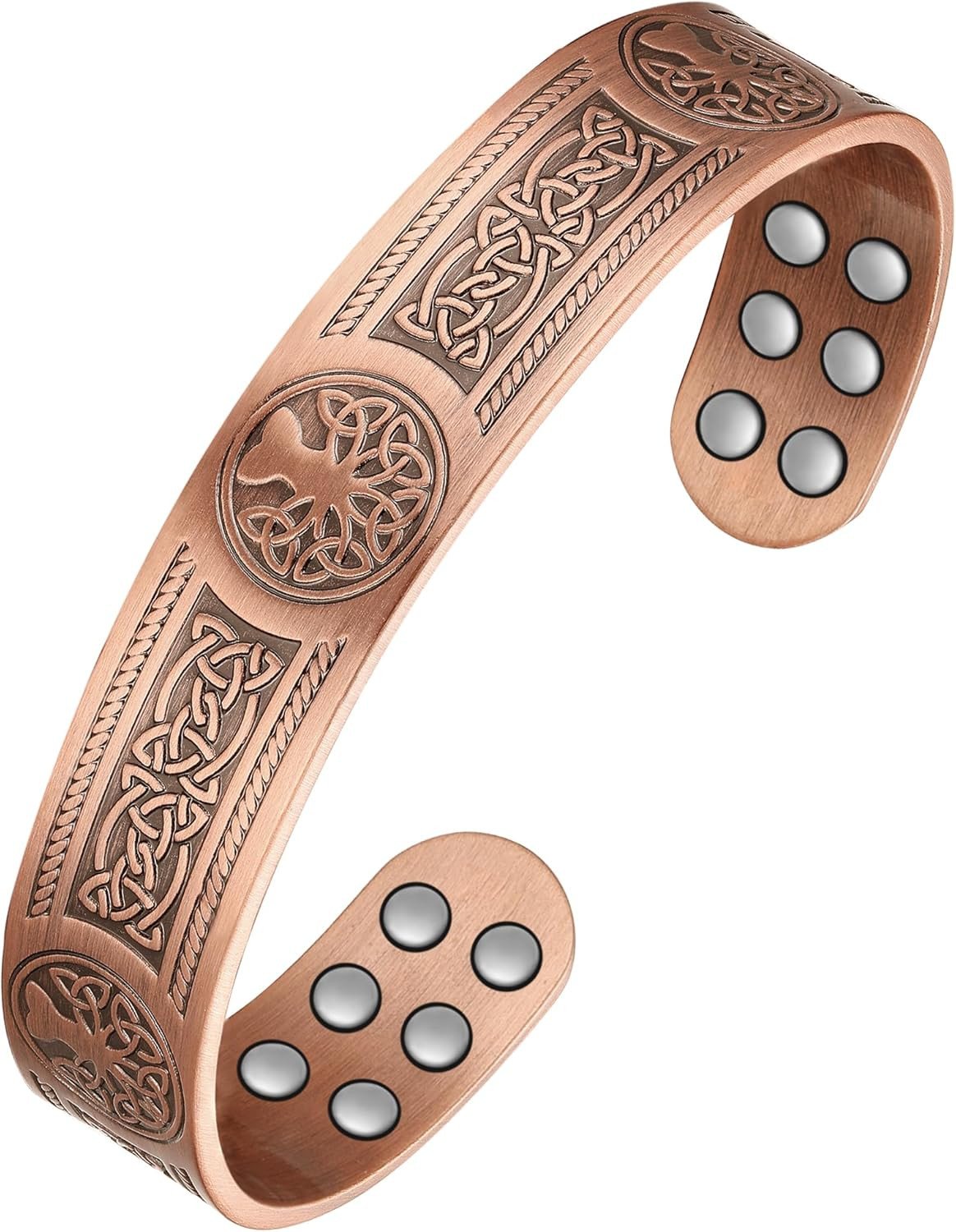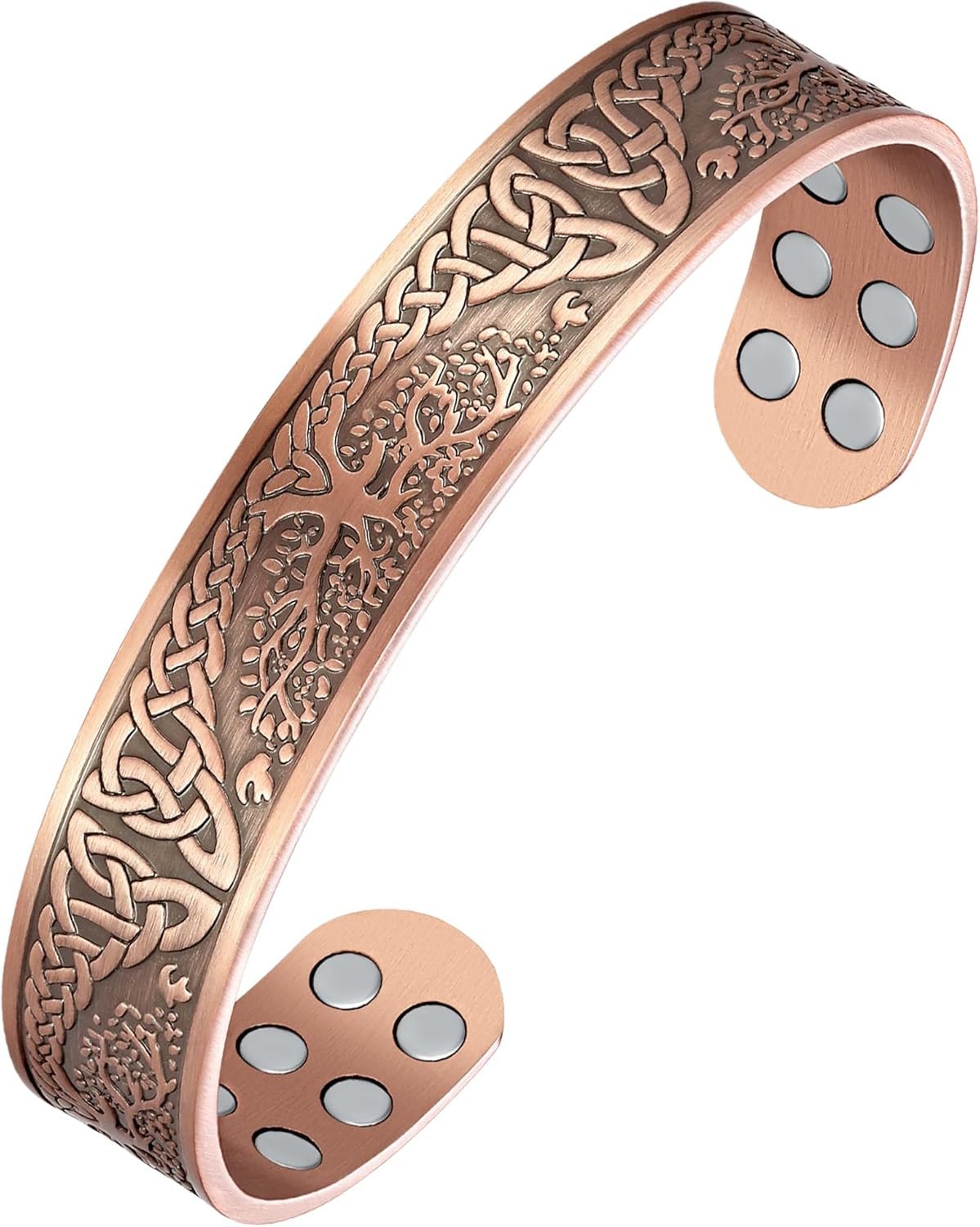 Jeracol 99.99% Soild Copper Bracelets for Men,3X Ultra Strength Magnets(3500 Gauss) Mens Magnetic Bracelets,Adjustable Size&Jewelry Gift Box