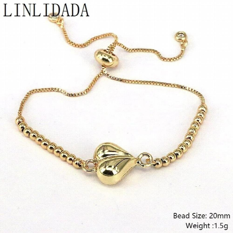 10Pcs Copper Bead Bracelet Adjustable Plated Heart Olive shape Charm Women Mens Bracelets