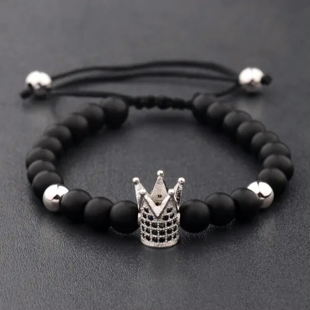 RSAMD Luxury Crown Natural Stone Matte Black Charm Men's Copper Bead Fashion Bracelets-L007-2