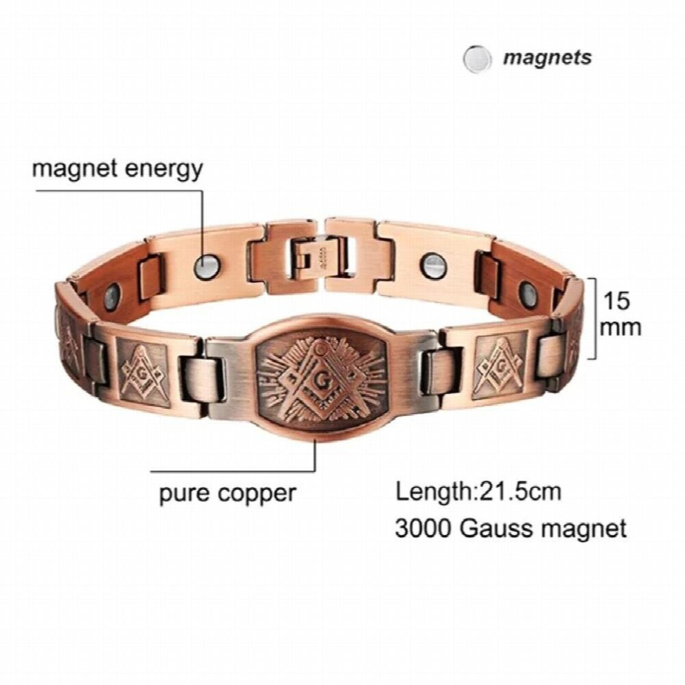Masonic Mens Pure Copper Bracelets Link with Double Raw 3000 Gauss Magnets Pain Relief for Arthritis, Carpal Tunnel Migraines