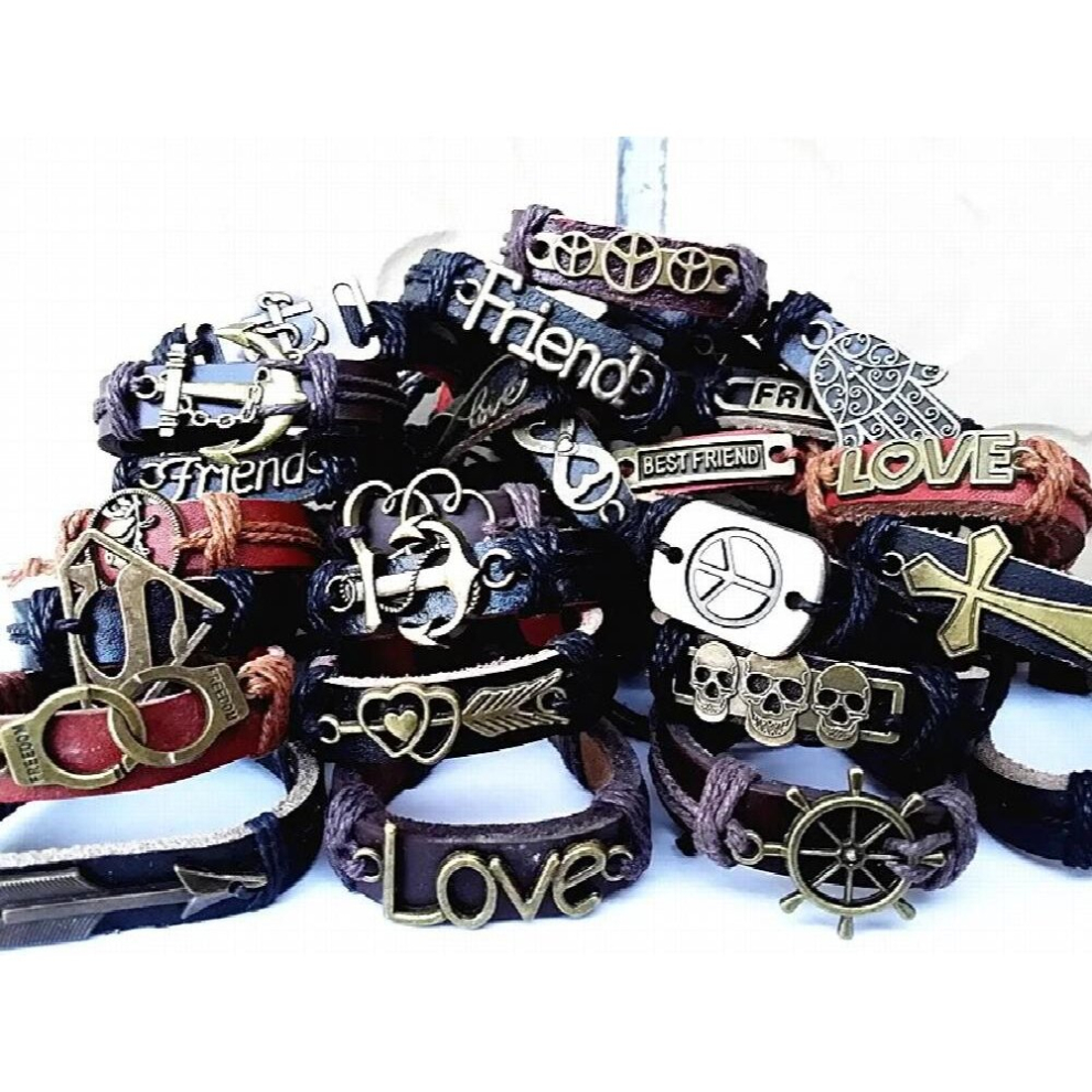50pcs cuff mens leather bracelets surfer mixed styles vintage Copper alloy Ethnic bangle wristband lots bulk