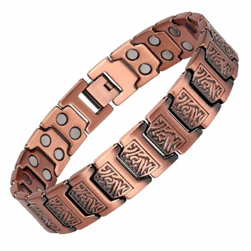 (As show, One size) Men's Copper Bracelet,3X Strength 99.99% Pure Copper Magnetic Bracelets with Magnets,Adjustable Length with Sizing Tooli