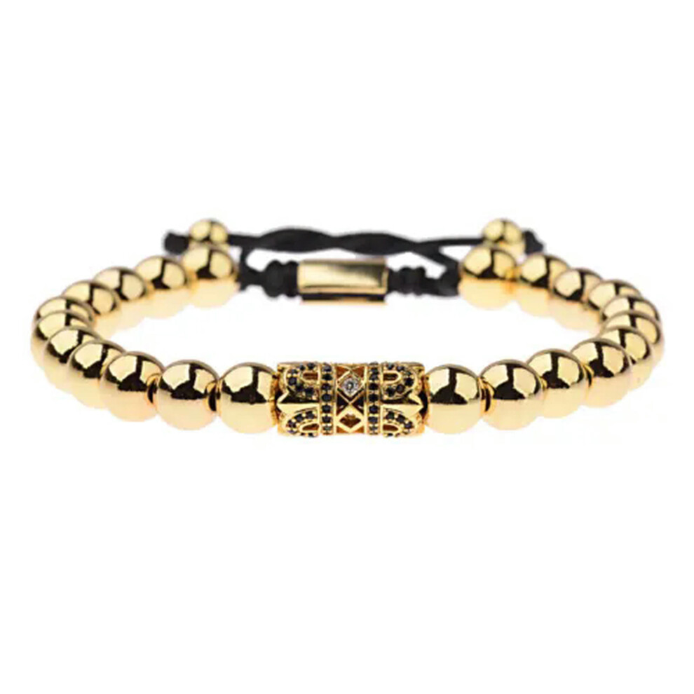 RSAMD Luxury Men's Micro Pave CZ Ball Crown Braided Adjustable Bracelets Copper Beads-Gold Plated