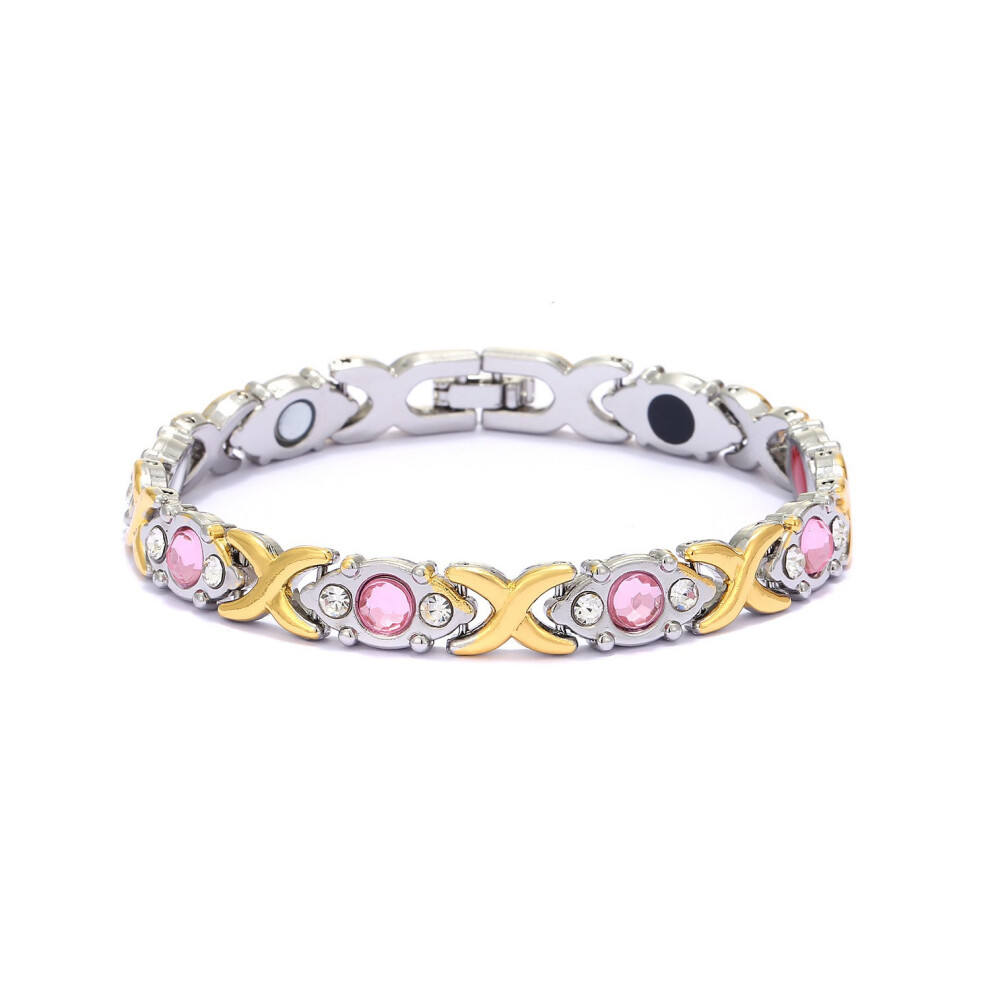(Silver-gold pink diamond) Copper Magnetic Bracelet Pain Relief Carpal Tunnel Arthritis Mens Womens,Flashes Energy Health Bracelets