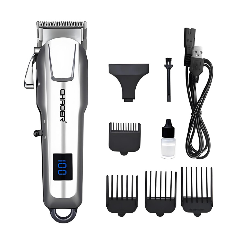 Mens Hair Clippers Cordless Professional Barber Set with Adjustable Blade LED Display Silver