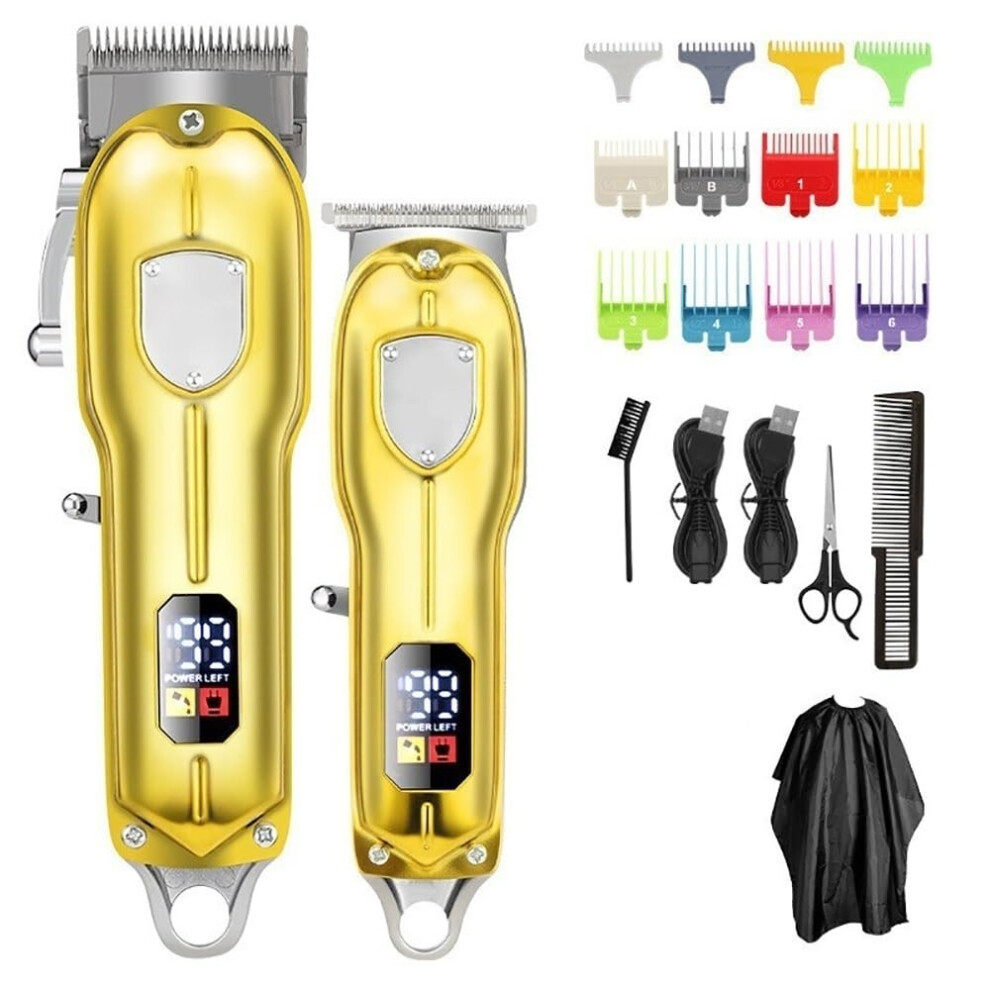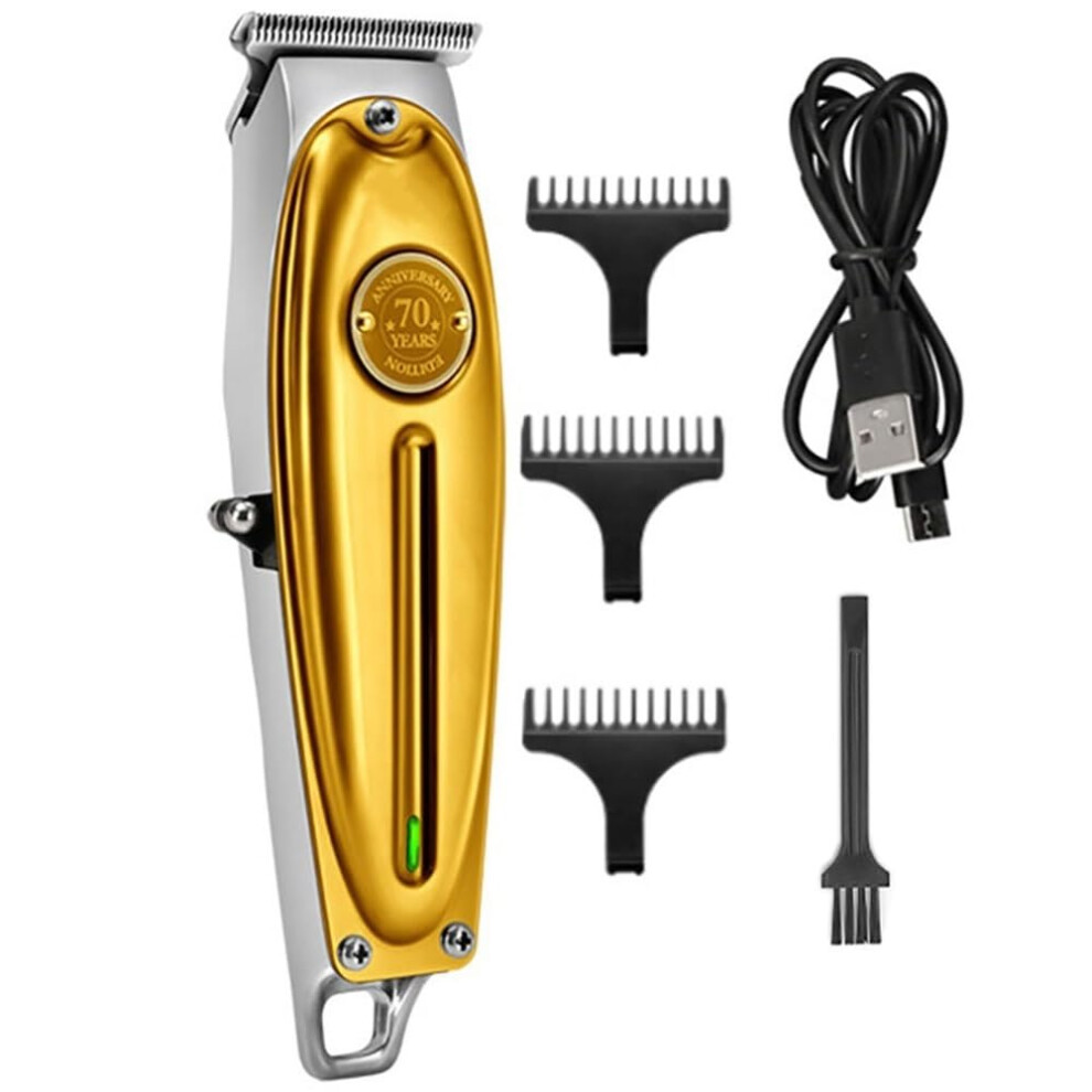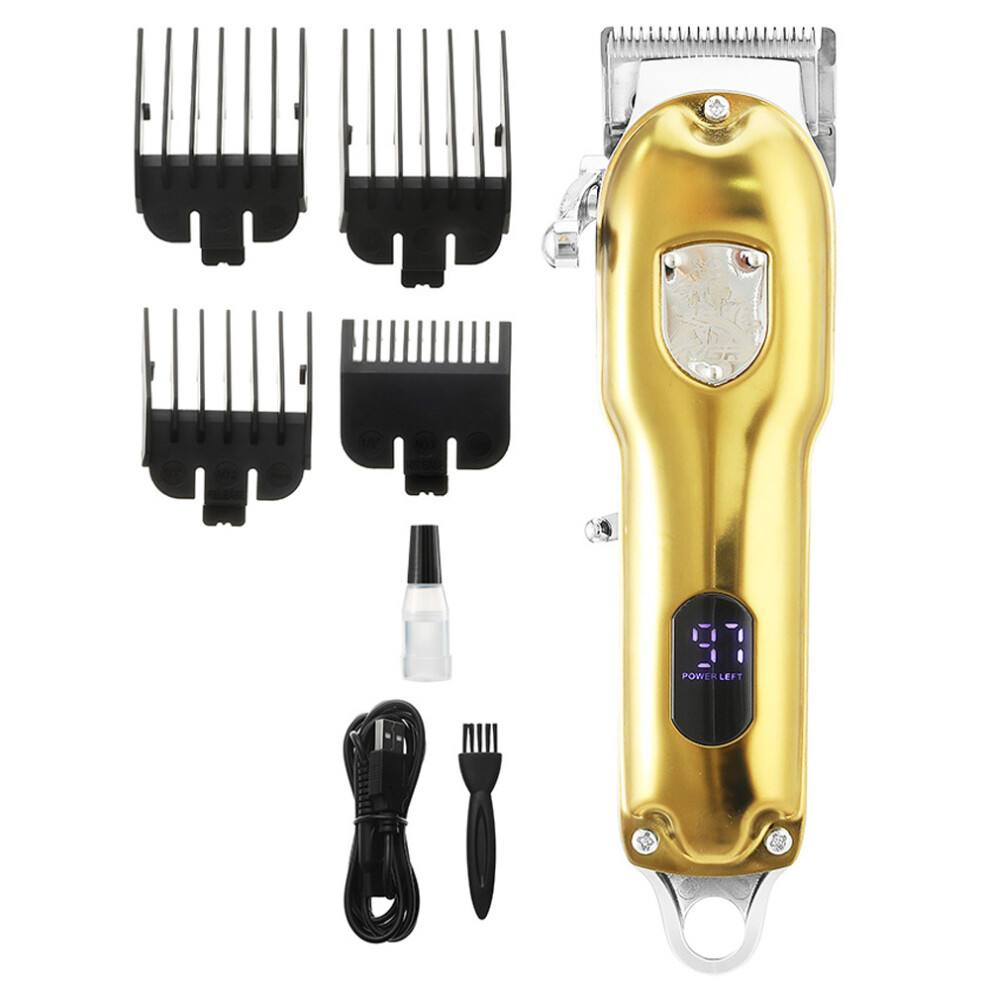 (Golden)Metal Professional Clipper Hairdresser Men's Cordless Rechargeable Electric Clippers Men's Beard