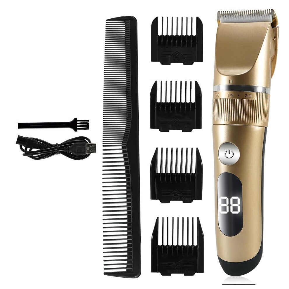 Mens Hair Clippers Cordless Rechargeable Trimmer with LCD Display and Precision Length Adjustment Gold