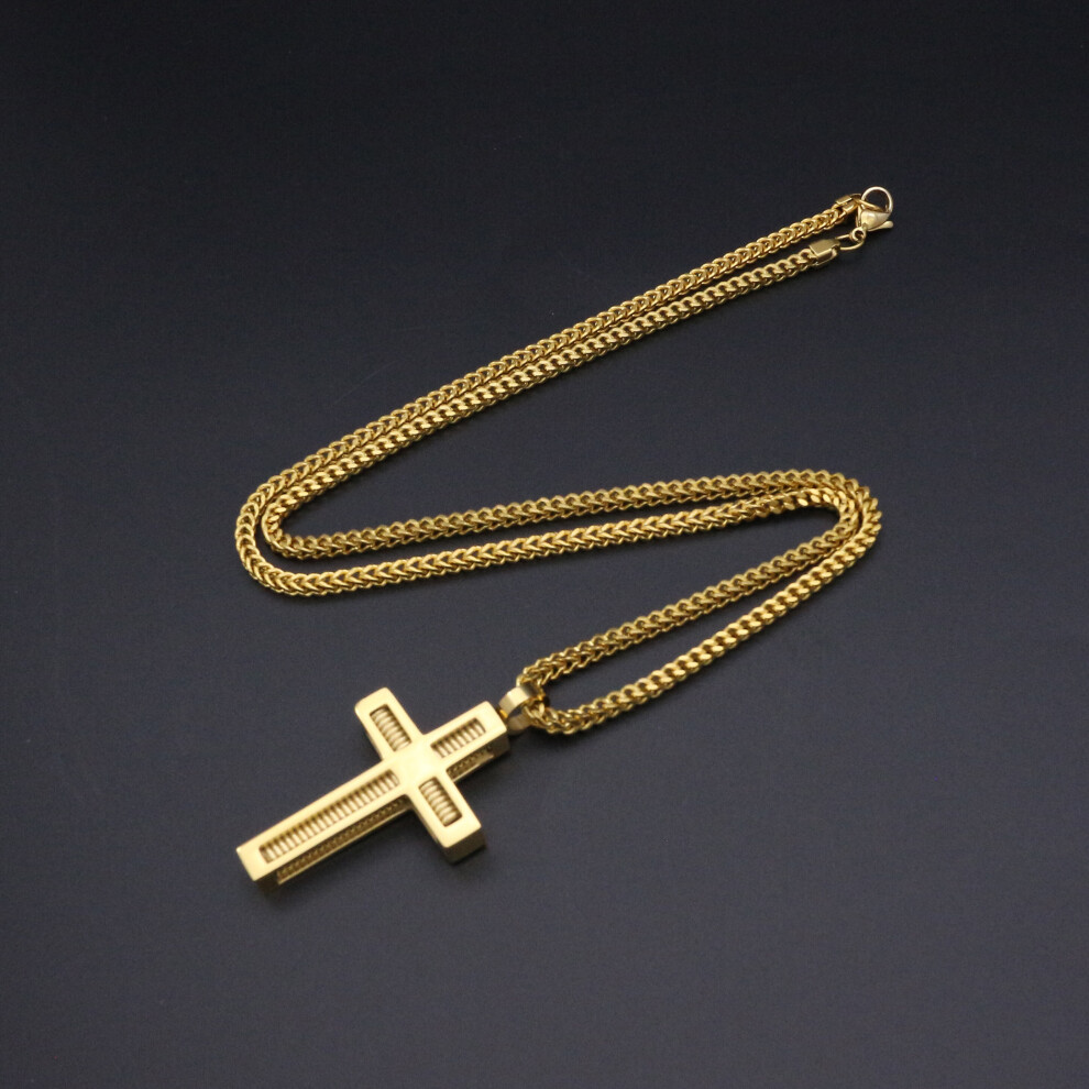Oidea Mens Jesus Cross Pendant Necklace: Gold Tone Punk Stainless Steel Necklace for Men Women Amulet Christian Jewelry Gift with 21.65'' Rough Chains