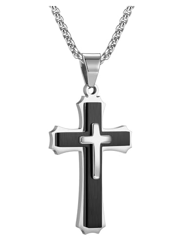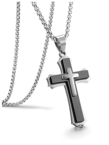 Jovivi Mens Cross Necklace for Men,Stainless Steel Silver Black Cross Crucifix Pendant Chain Necklace for Boys Men's Jewellery Christian Gifts