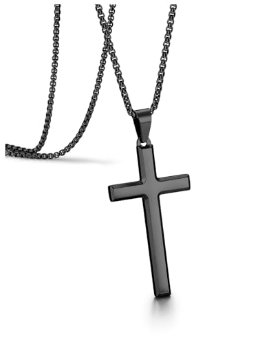 Jovivi Mens Black Cross Necklace for Men,Stainless Steel Cross Crucifix Pendant Chain Necklace for Boys Men's Jewellery Christian Gifts