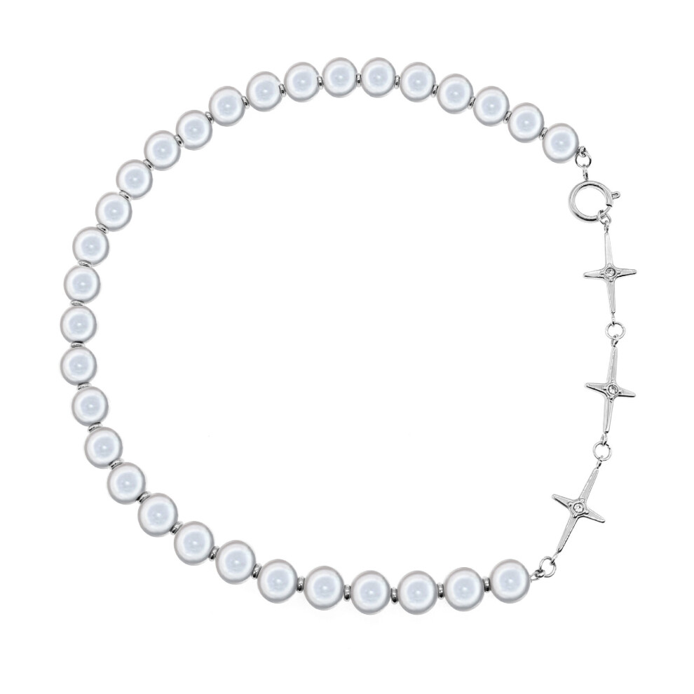 1 Pc Mens Cross Pendant Necklace Cross Beaded Necklace Sweater Chain Reflective Pearl Necklace Thanksgiving Christmas Birthday For Men Women Friends