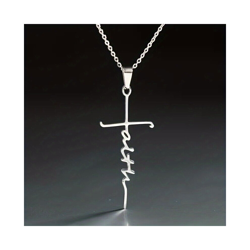 1pc Mens Faith Cross Pendant Necklace Hip Hop English Letter Necklace