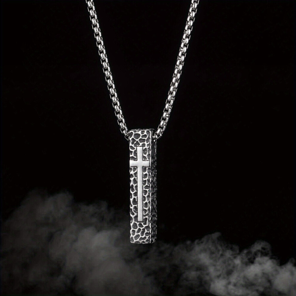 1pc Mens Cross Pendant Necklace Vintage Stone Pattern Rectangular Cross Stainless Steel Necklace Thanksgiving Christmas Birthday For Men Women