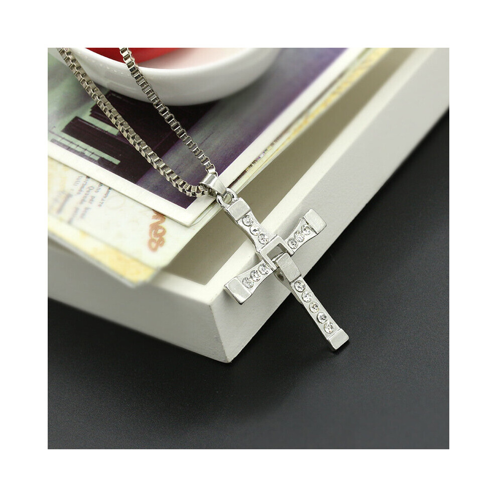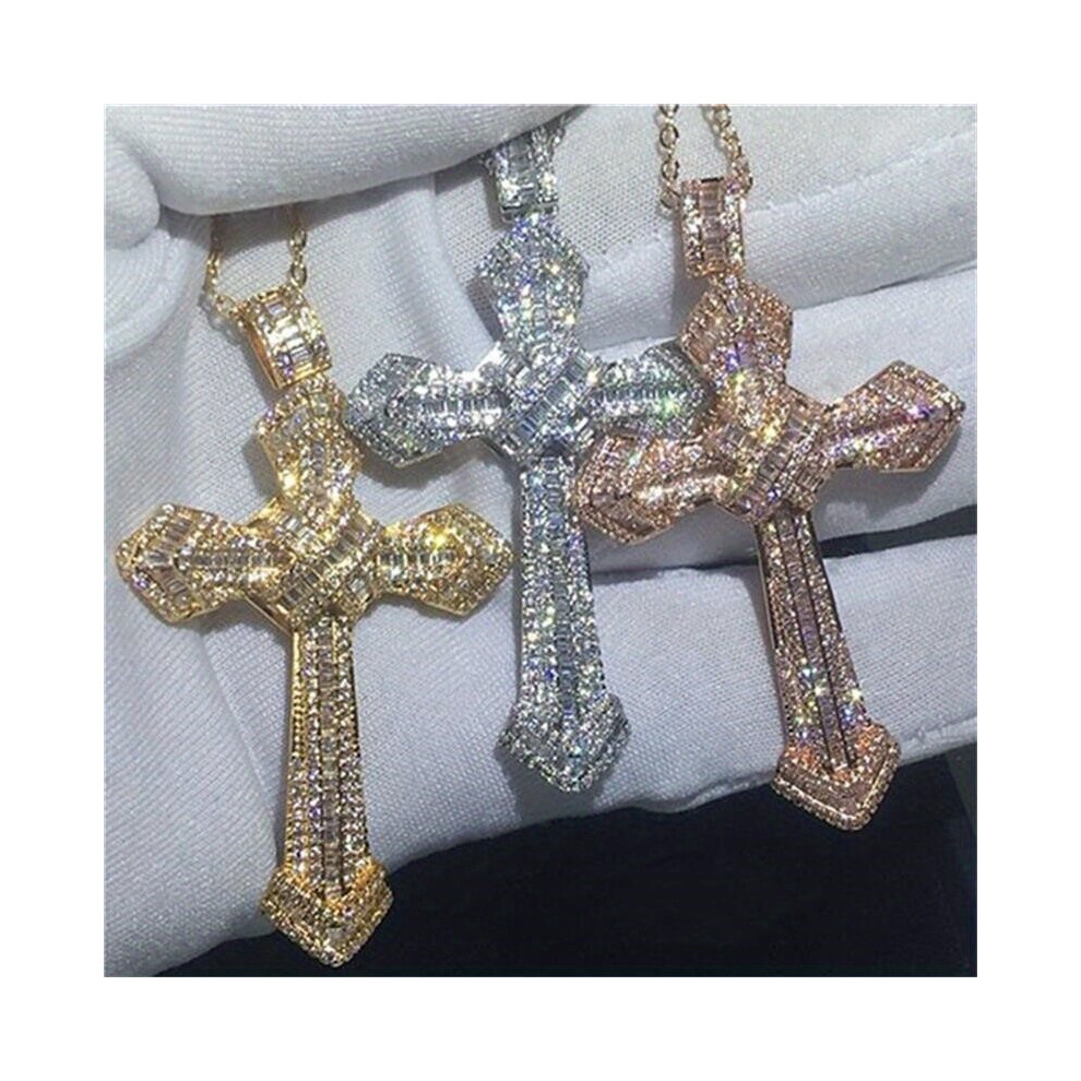 1pc Mens Cross Pendant Necklace Full Artificial Diamond Pendant Clavicle Chain
