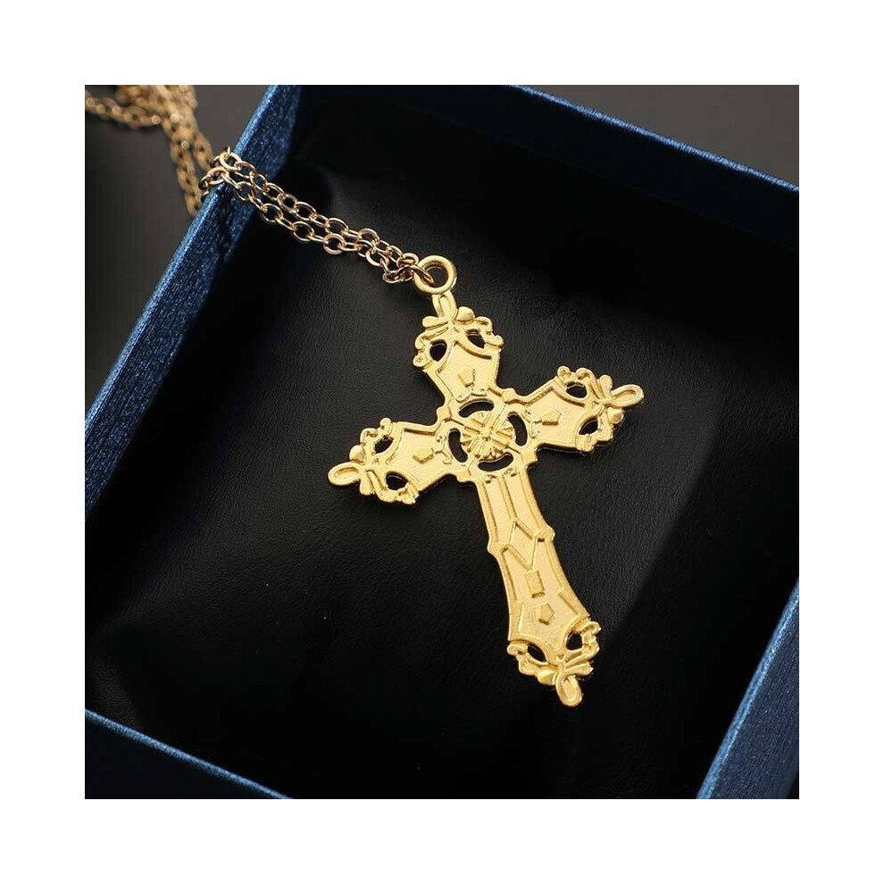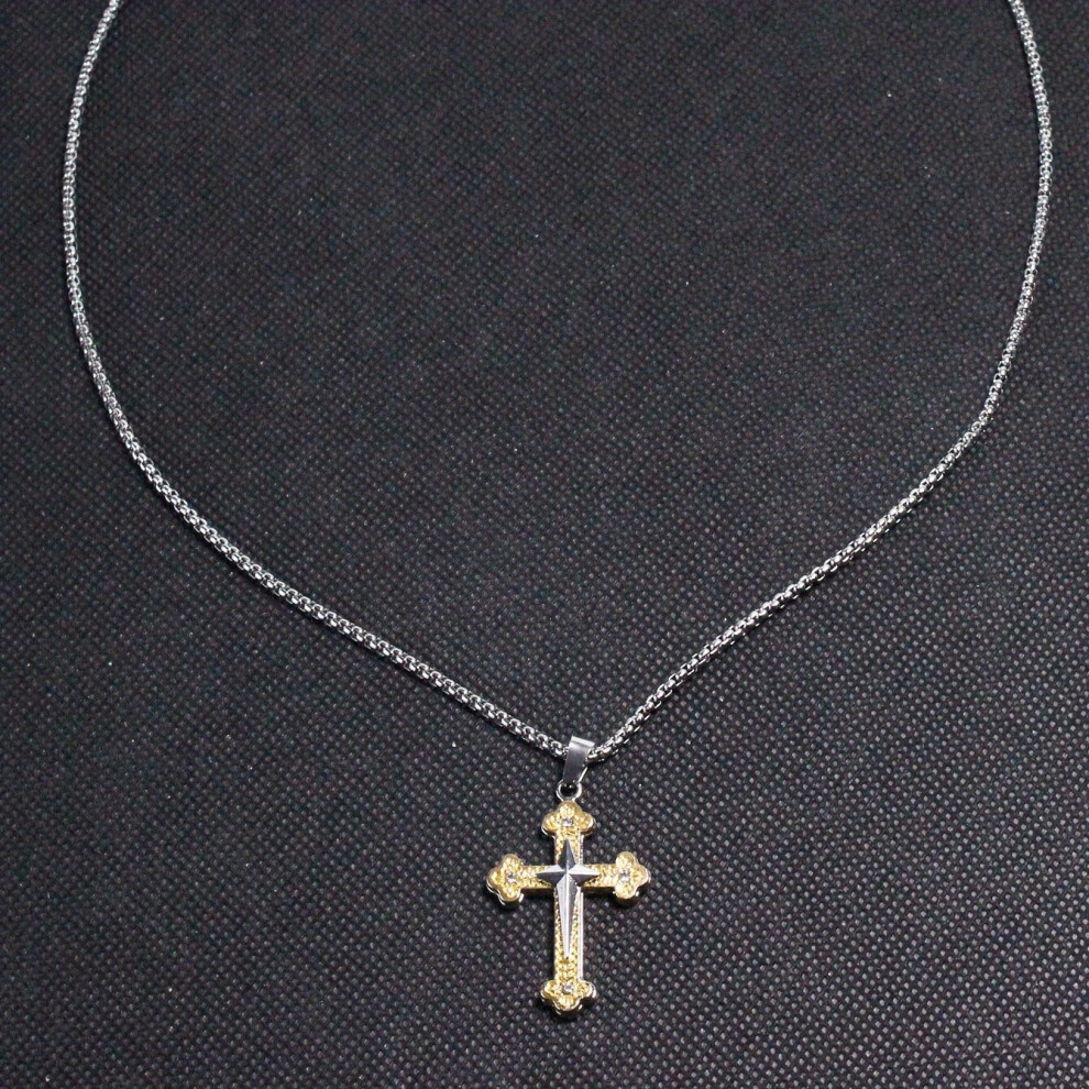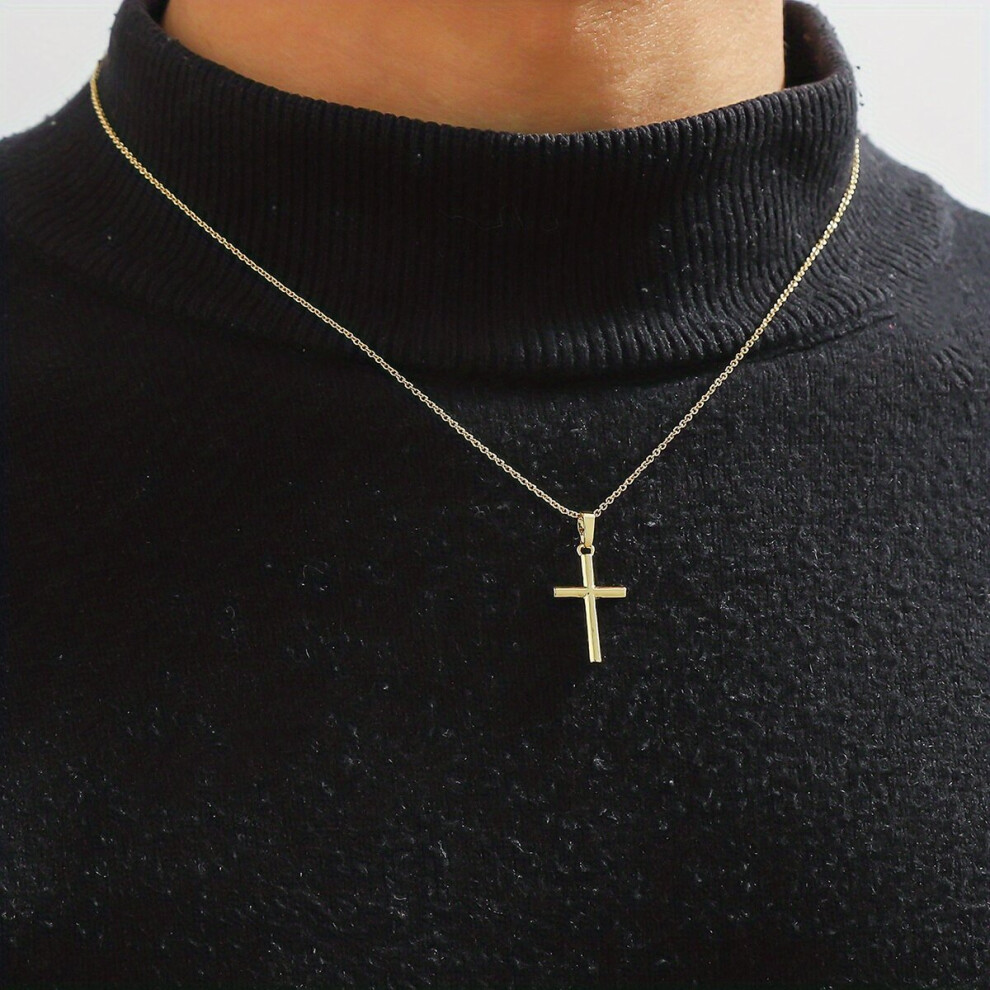 1pc Mens Golden Cross Necklace Silver Necklace Retro Cross Pendant Necklace