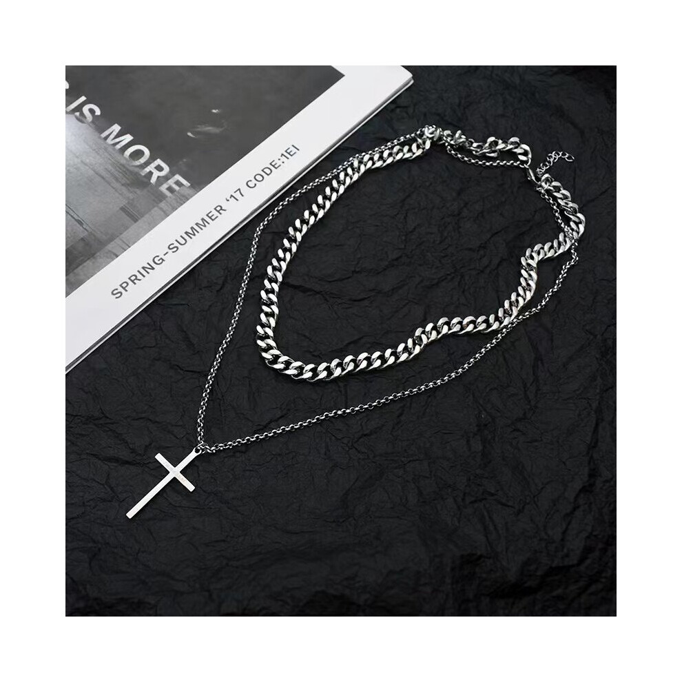 Mens Cross Necklace Domineering Titanium Steel Pendant Necklace Multilayer Zircon Necklace Accessories Dress Up Holiday