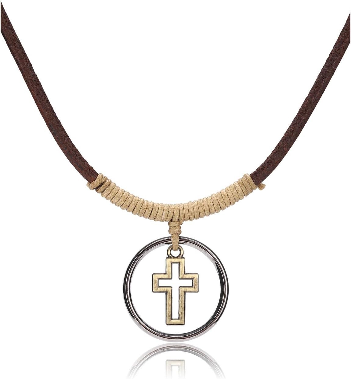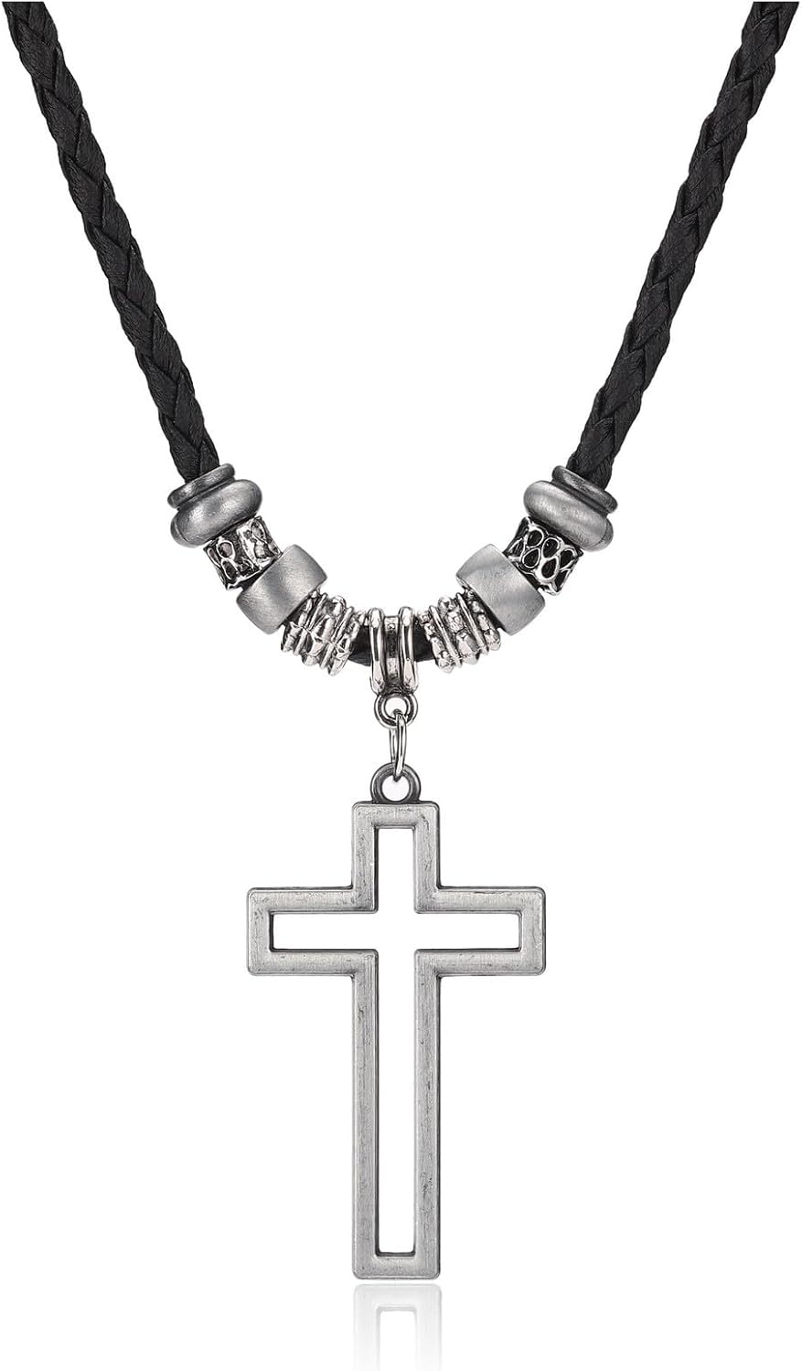 Mens Cross Necklace for Men Jewellery,Stainless Steel Silver Cross Pendant Leath