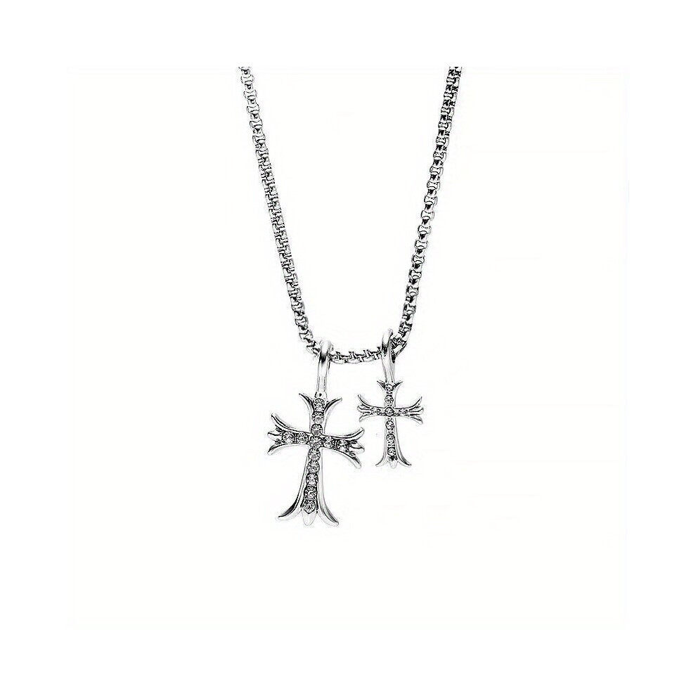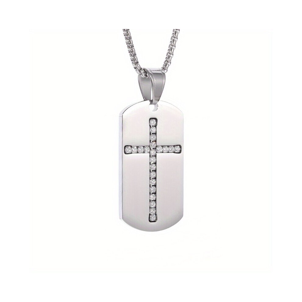 1pc Retro Mens Rhinestone Cross Pendant Necklace Titanium Steel Necklace Hip Hop Couple Chain Necklace