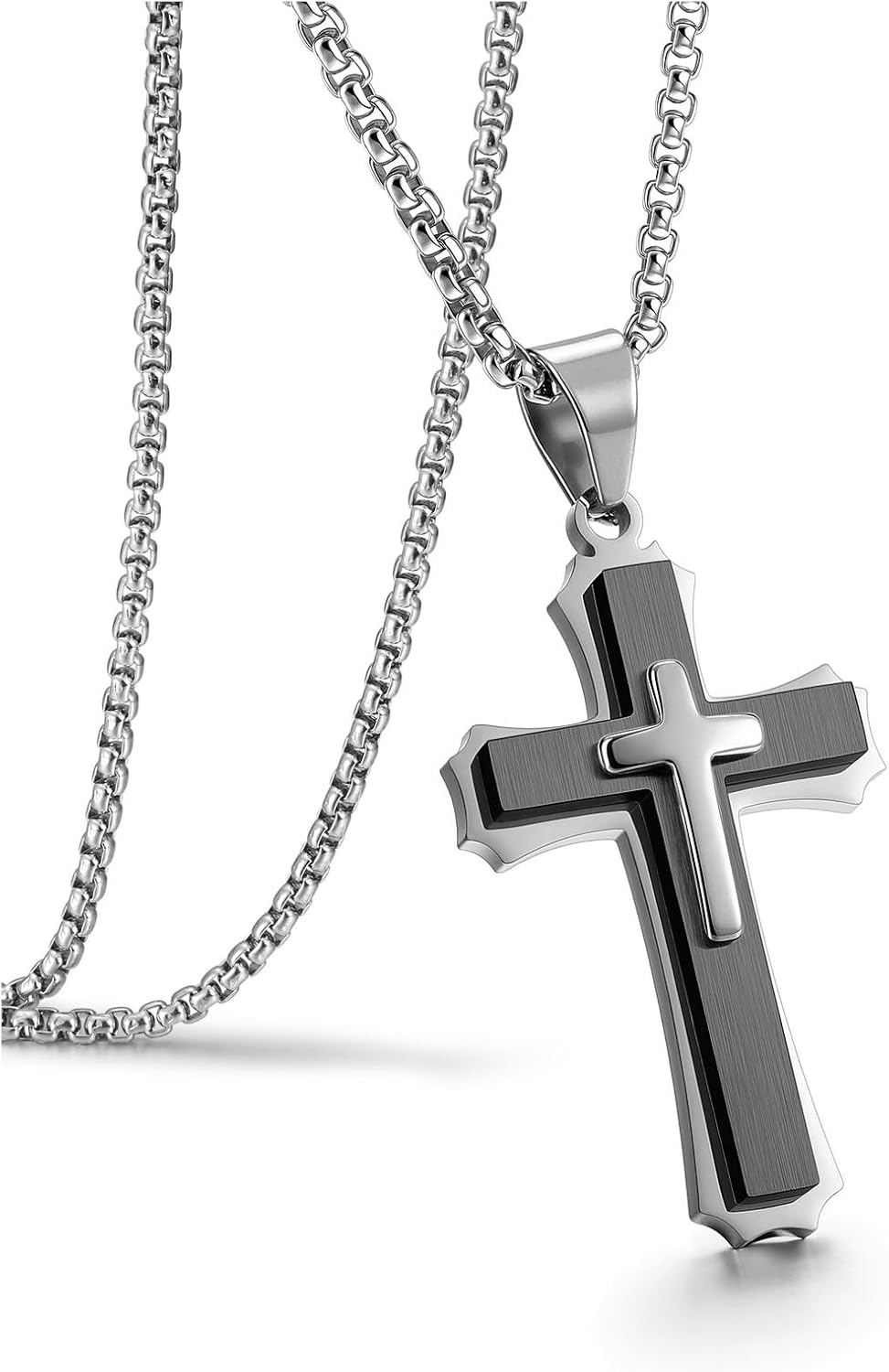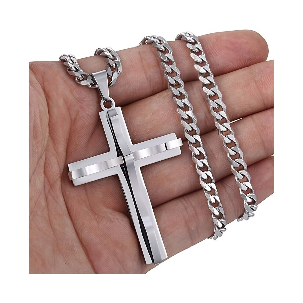 Jovivi Mens Cross Necklace for Men,Stainless Steel Silver Black Cross Crucifix Pendant Chain Necklace for Boys Men's Jewellery Christmas Christian Gifts for Men Him