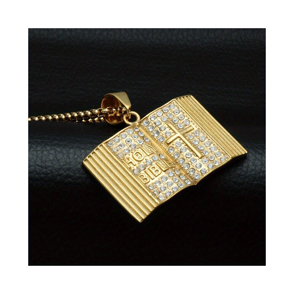 1 Pc Mens Pendant Necklace Cross Bible Religious Pendant Inlaid With Zircon Necklace Punk Unisex Hip hop Jewelry