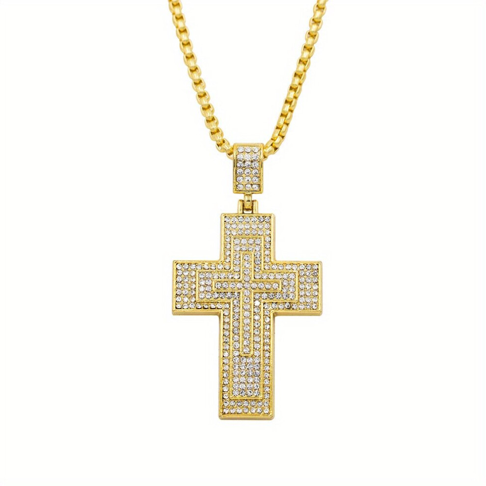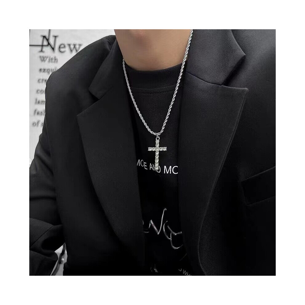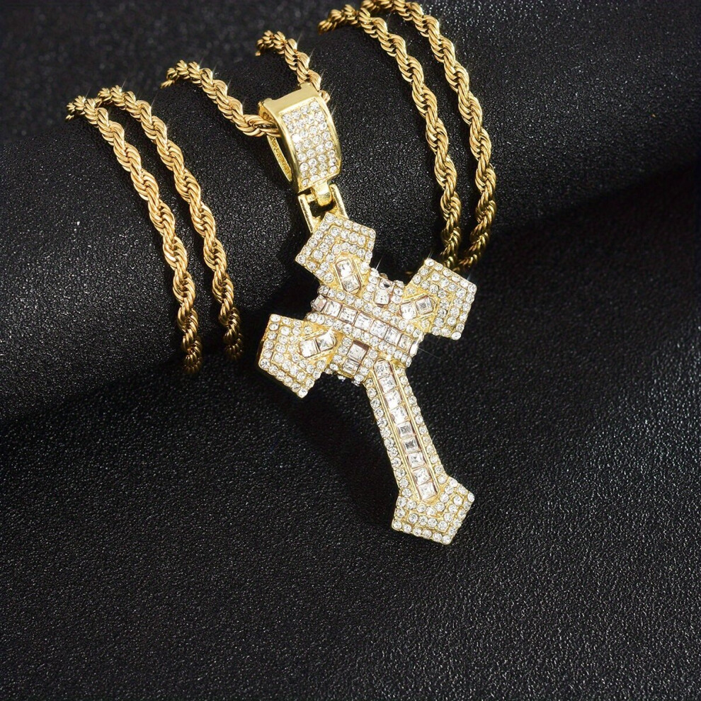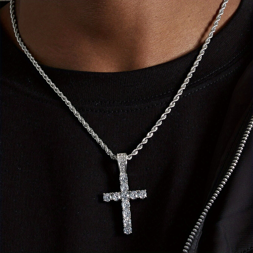 1pc Mens Cross Pendant Necklace Hip Hop Set Rhinestone Cross Pendant Necklace Thanksgiving Christmas Birthday For Men Women Friends