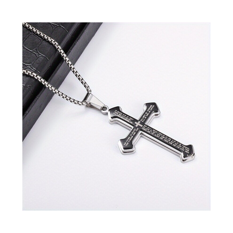 1pc Mens Cross Pendant Necklace Bible Cross Pendant Stainless Steel Necklace Thanksgiving Christmas Birthday For Men Women Friends