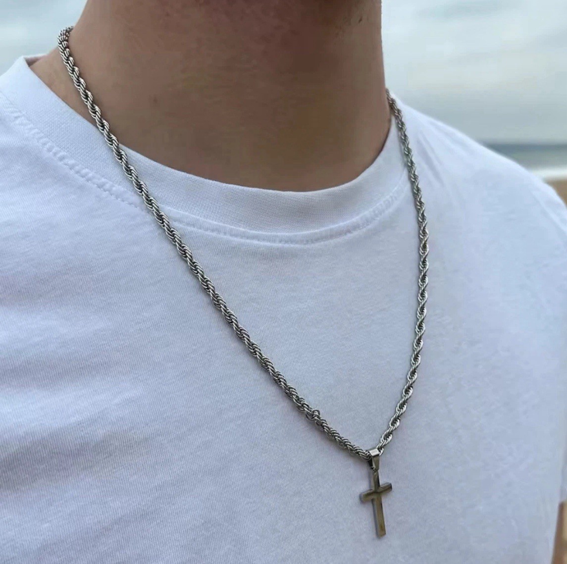 Mens Stainless Steel Cross Necklace Rope Chain Pendant Jewelry