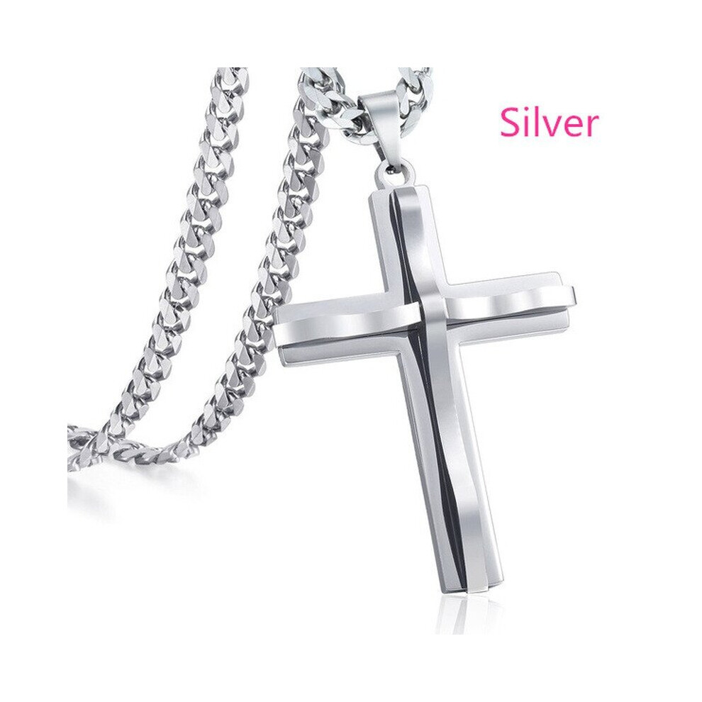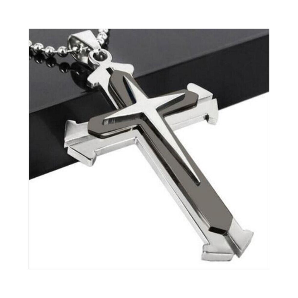 1pc Mens Cross Pendant Necklace Chain Mens Religious Jewelry