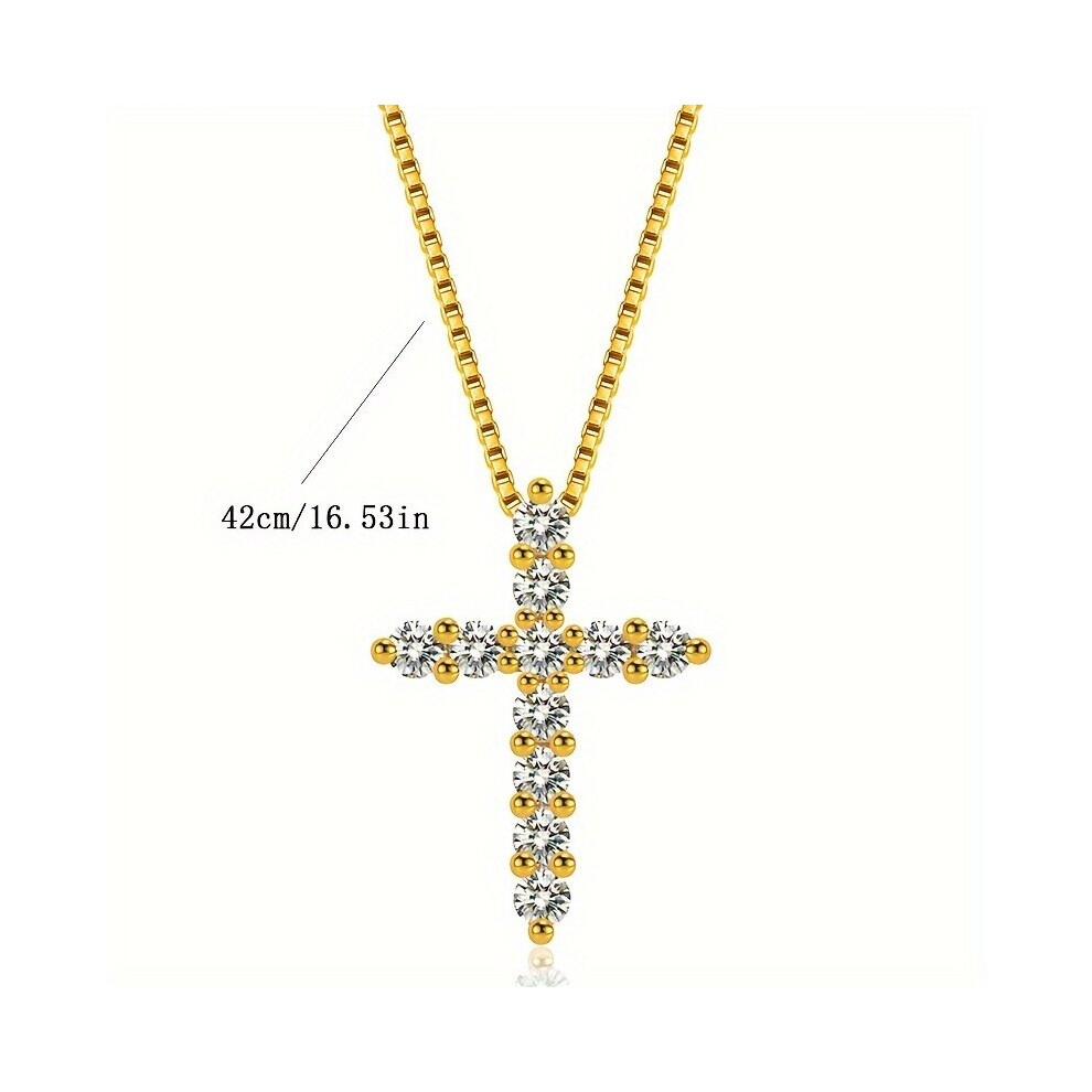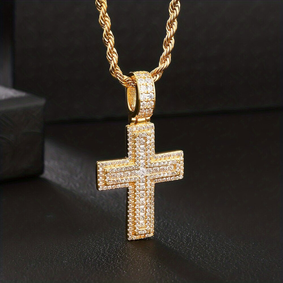 1pc Mens Cross Necklace Silver Golden Central Faux Diamond encrusted Cross Jesus Pendant Necklace Mens Jewelry Tennis Chain