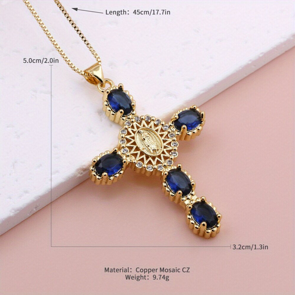 1pc Mens Cross Pendant Necklace Large Dark Crystal Cross Necklace Long Charm Sweater Chain Accessory Thanksgiving Christmas Birthday For Men Women Fr