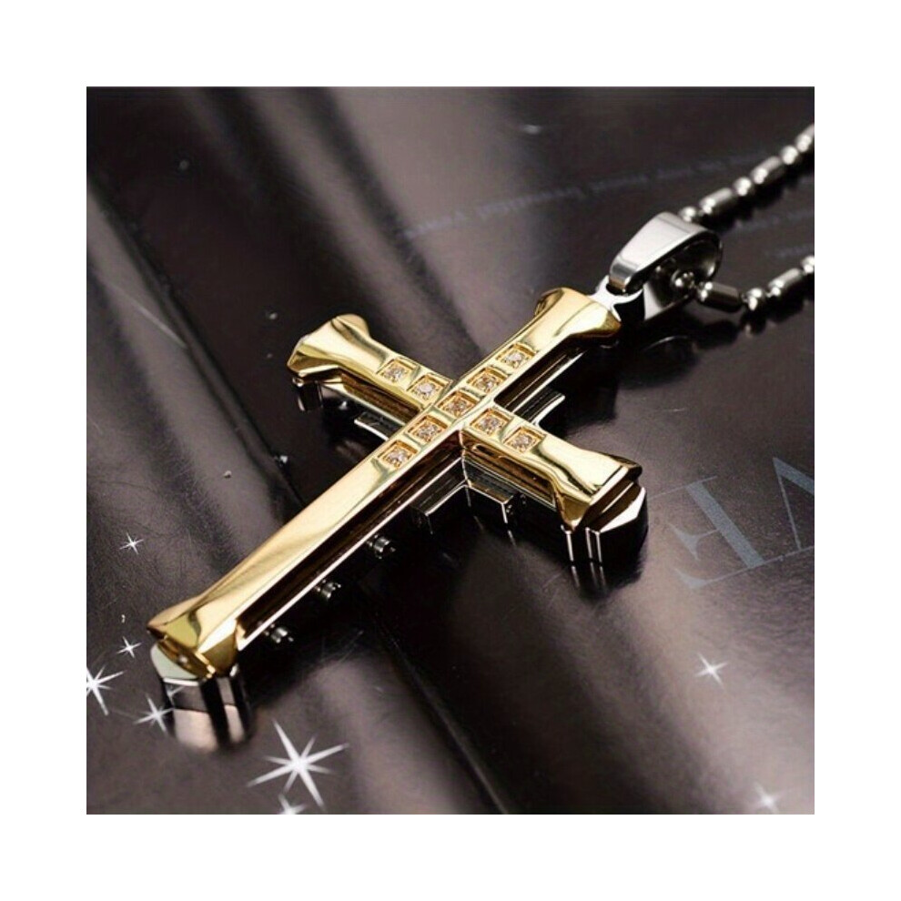 1pc Mens Silver Golden Cross Necklace Pendant Movie Jewelry Sweater Chain
