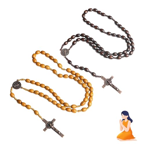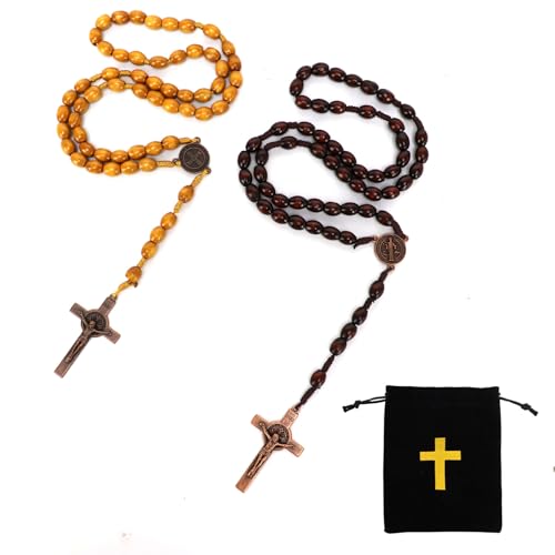 DOINEUFL Rosary Beads Catholic Men, 2 PCS Prayer Beads with Durable Crucifix, Mens Cross Necklace, Rosemary Beads Catholic Women for Christians, Communion, Baptism, Mass, Bible