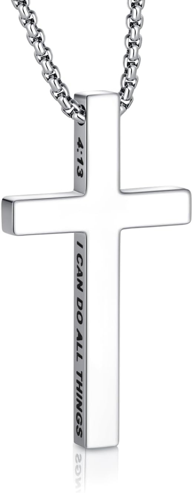 Mens Cross Necklace Bible Philippians 4:13 Cross Pendant Necklaces Chain for Men