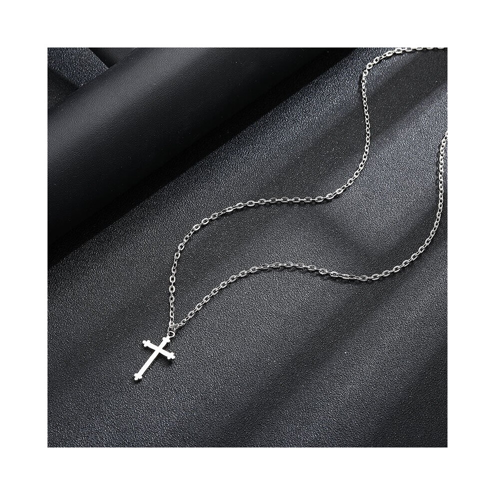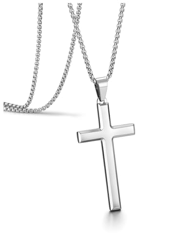 Mens Cross Necklace for Men,Stainless Steel Silver Cross Crucifix Pendant Chain