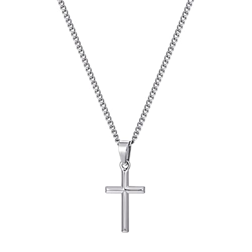 Jovivi Mens Silver Cross Necklace for Men Women,Stainless Steel Cross Crucifix Pendant Chain Necklace for Boys Men's Jewellery Christian Gifts