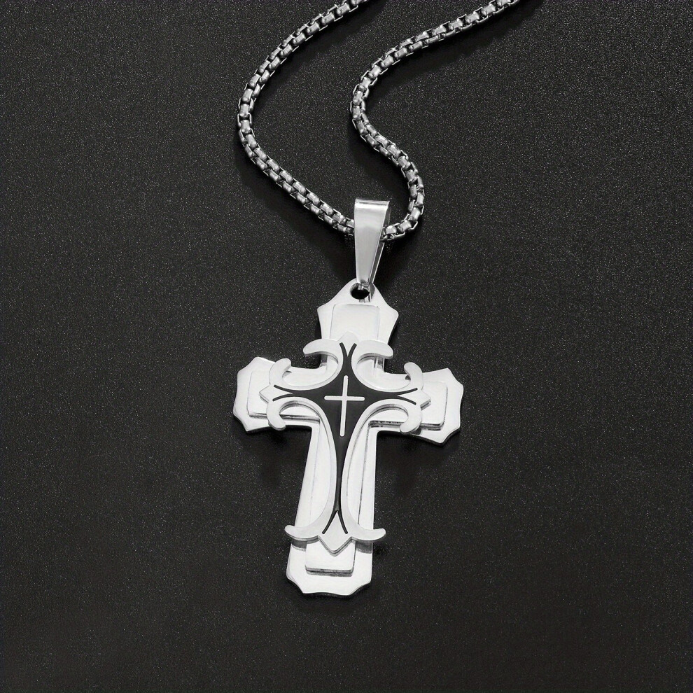1pc Mens Cross Pendant Necklace Cross Stainless Steel Necklace Thanksgiving Christmas Birthday For Men Women Friends