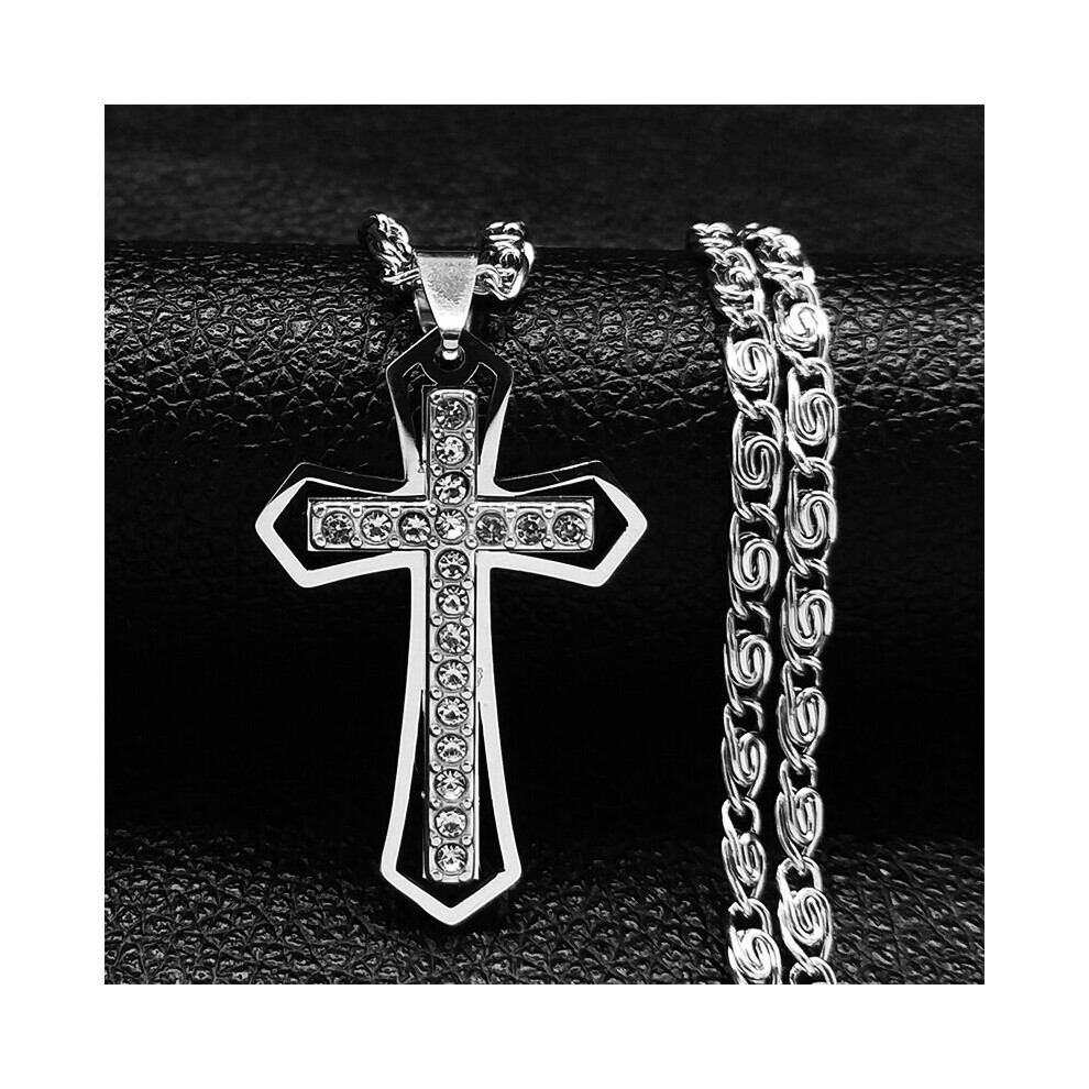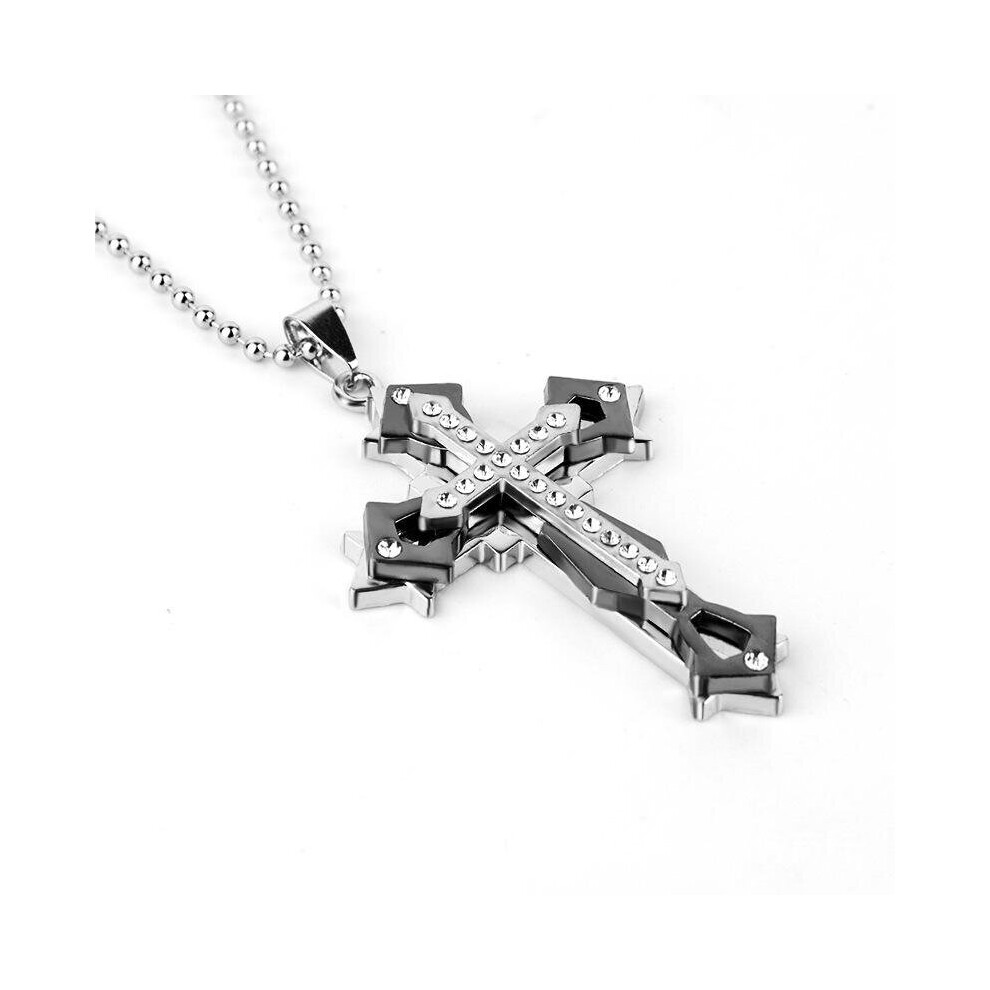 Amulet Mens Zircon Cross Pendant Necklace Three Layer Titanium Steel Necklace Handsome Mens Classic Jewelry Accessories Holiday Gift